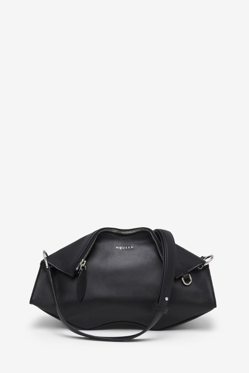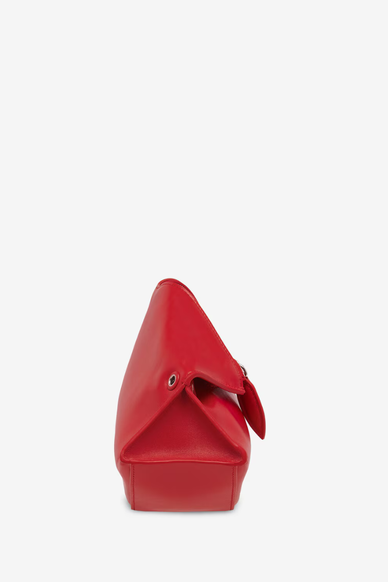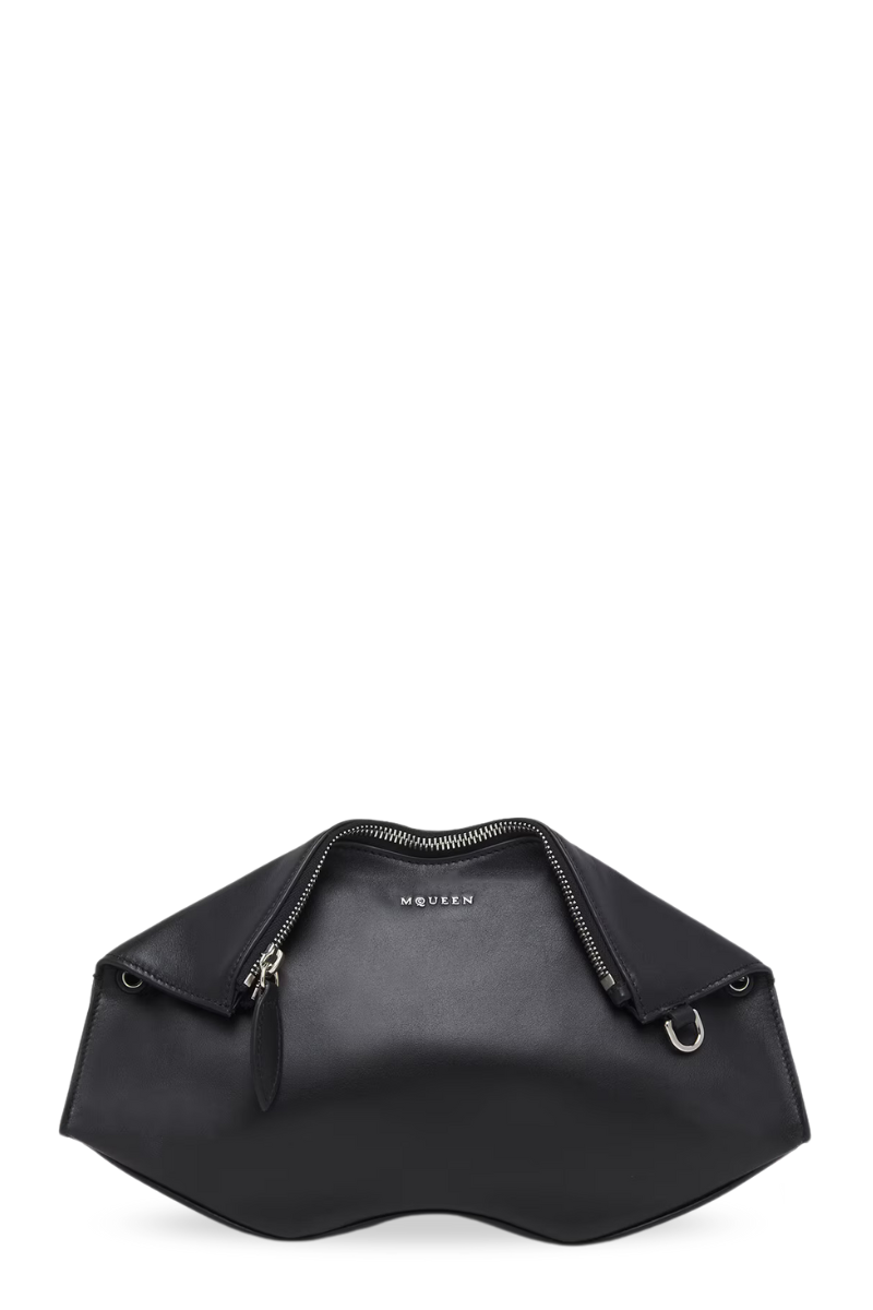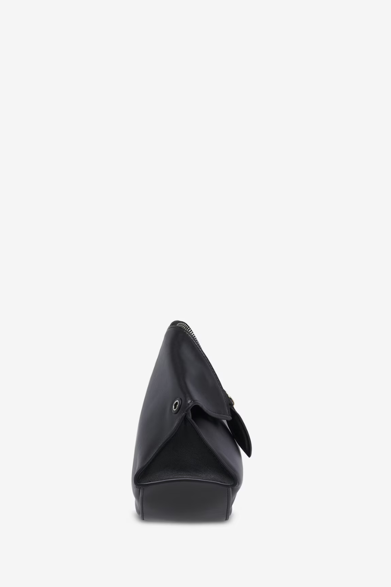 The Manta Clutch – a reinterpretation of an iconic archival silhouette in black nappa calf leather. Made in a sculptural construction with folded upper edges and a rigid wave-shaped base.